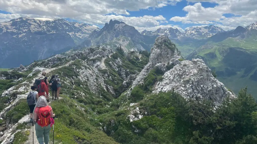 Durant l’été, je collabore avec différentes agences de voyage. Et notamment avec l’agence Manalaya de mon amie Lorelei. J’encadre en générale deux à trois semaines de randonnée et de yoga à Courchevel en Savoie.