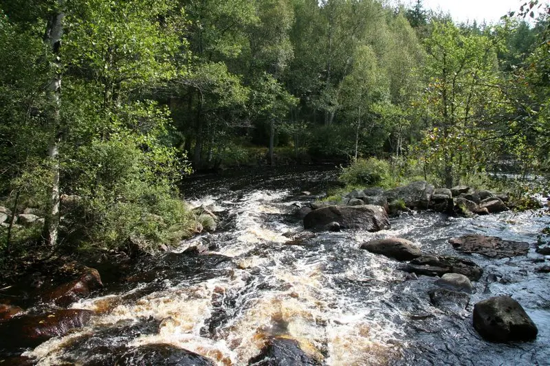 L’Alsterån ressemble à un collier de perles dans Glasriket. La rivière de 15 km de long varie entre des parties gracieuses calmes avec des prés marécageux d’eau et des barrages à des sections de courants.