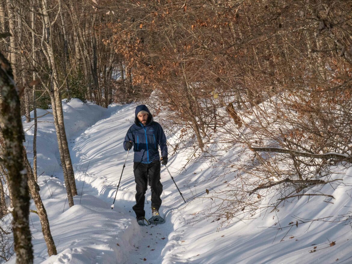 Je trouve l’activité beaucoup plus physique que la raquette. En effet, la veste doit être aérée dans les 10 premières minutes ou je me retrouve vite en sueur. Les mouvements de bras avec les bâtons sont très amples et la veste fait un petit peu de bruit ce qui est un peu dérangeant.